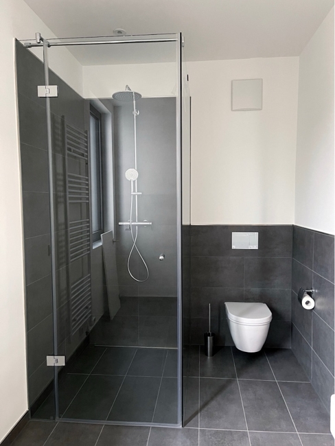 Auch das Tageslicht-Masterbad ist hier mit angegliedert und verfügt über eine geräumige Dusche sowie eine hochwertige Ausstattung der Marke Duravit.